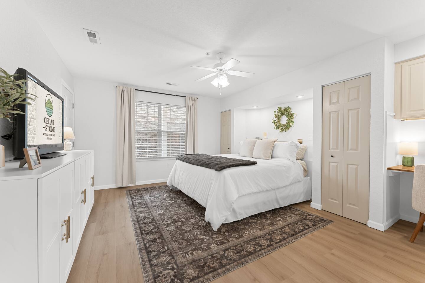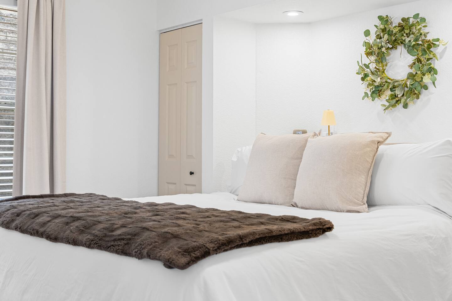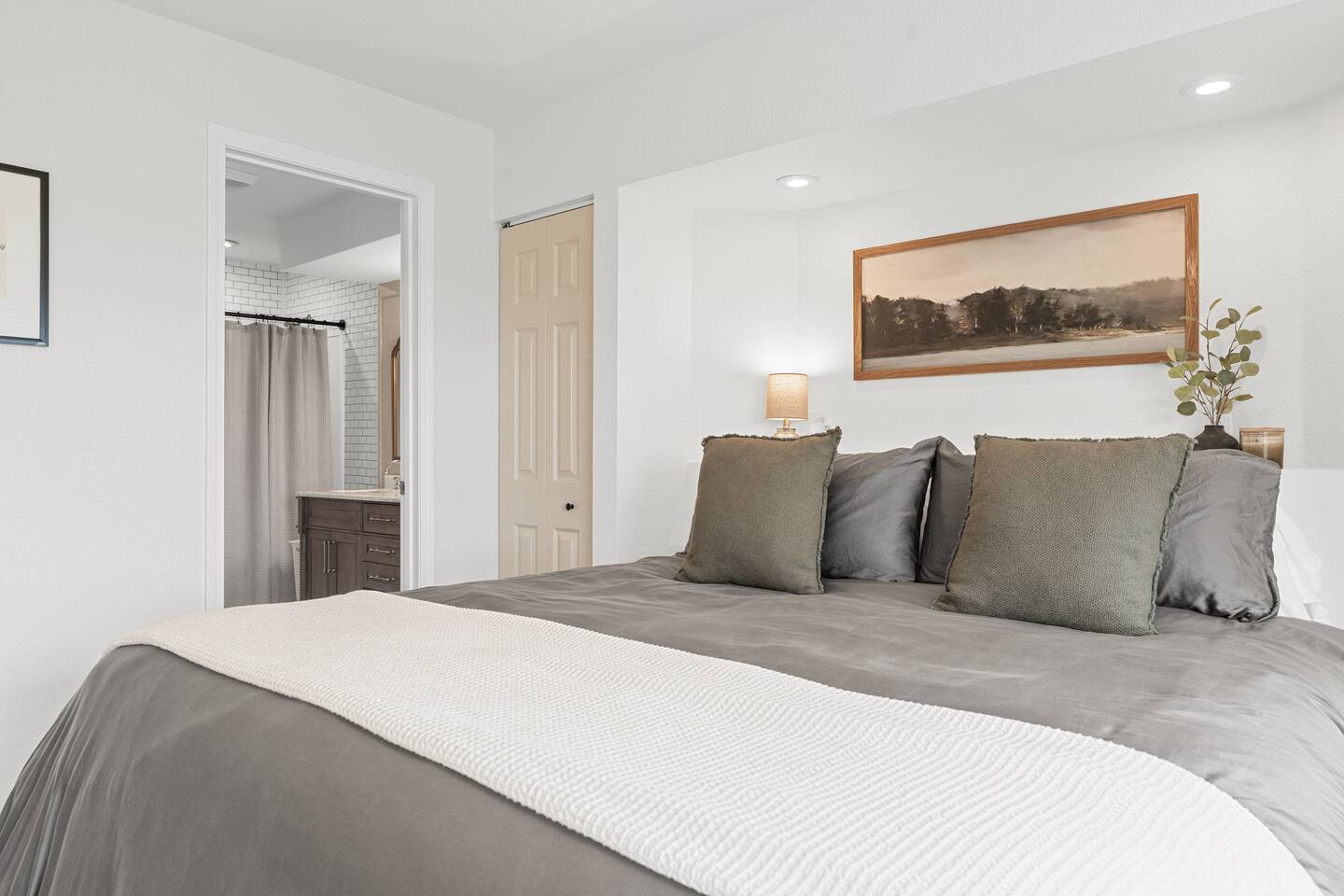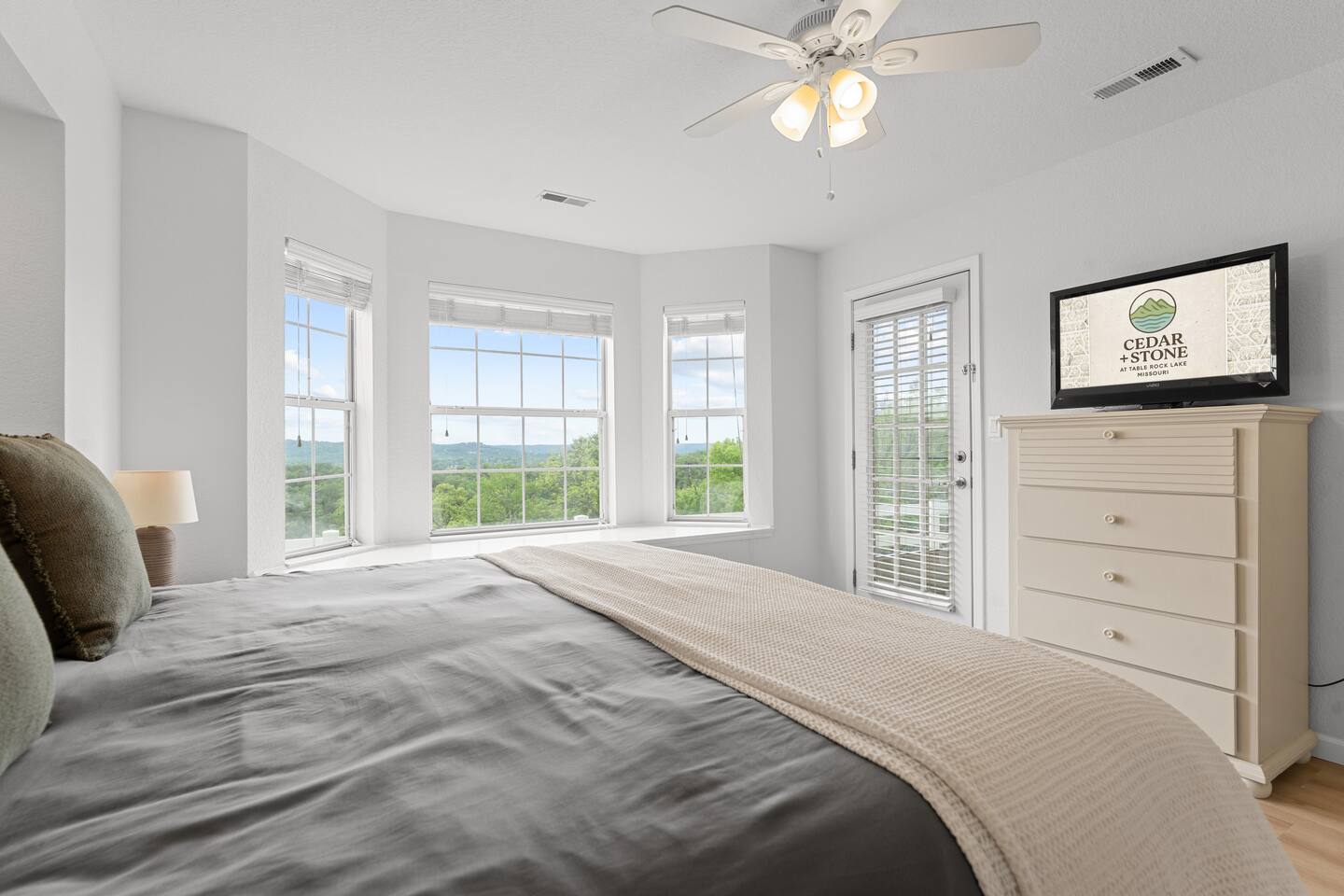Welcome to Cedar + Stone - a modern lakefront retreat nestled in the Ozark Mountains at Table Rock Lake on the Missouri - Arkansas boarder. This serene and stylish 2-bedroom, 2-bath condo has been thoughtfully designed to feel like your own personal escape. Both bedrooms feature plush king-size beds, and the spacious living area includes a queen sleeper sofa to comfortably accommodate up to six guests. Whether you're sipping coffee on the screened-in patio or winding down with a movie on the smart TV, you’ll feel right at home. Inside, you’ll find a fully stocked kitchen, a cozy dining nook, a dedicated workspace, and tasteful modern finishes throughout. The condo is located in a peaceful building within the Ozark Mountain Resort community, giving you access to resort-style amenities including a seasonal outdoor pool, pickleball courts, mini golf, walking trails, and lake access just a short walk away. Cedar + Stone is ideal for families, couples, or friends looking to unwind in nature without sacrificing comfort. With Branson’s entertainment, shopping, and dining just 25 minutes away, you can enjoy the perfect balance of adventure and relaxation. Whether you’re here for lake days, cozy nights, or a little bit of both - we can’t wait to host your stay.