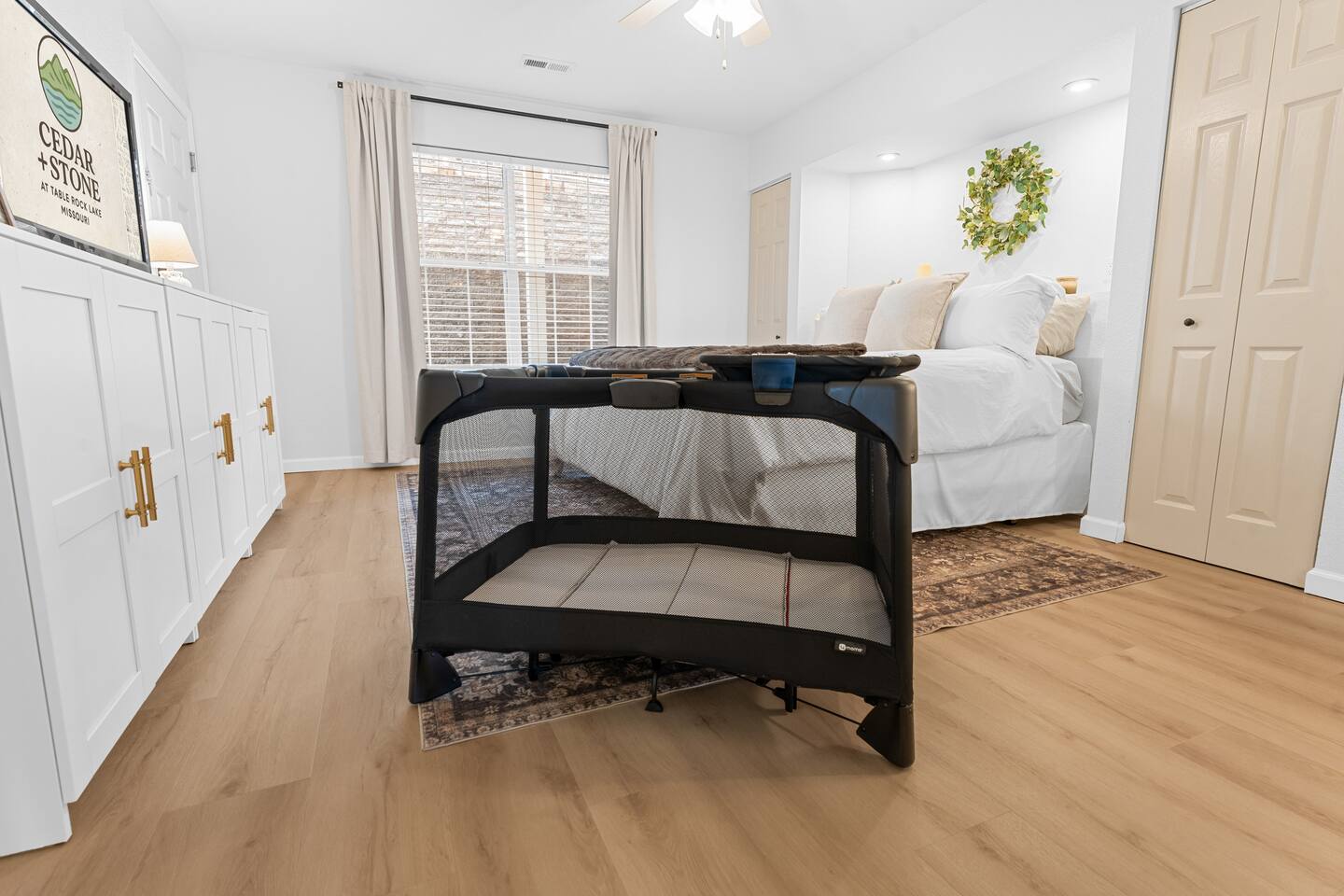Guests have full private access to the entire condo, including both bedrooms, bathrooms, living areas, kitchen, and screened-in patio. You’ll also have access to all resort amenities, including the outdoor pool, pickleball courts, mini golf, lakefront trails, and lake access areas. Free parking is available on-site, and entry to the condo is keyless for easy self check-in.